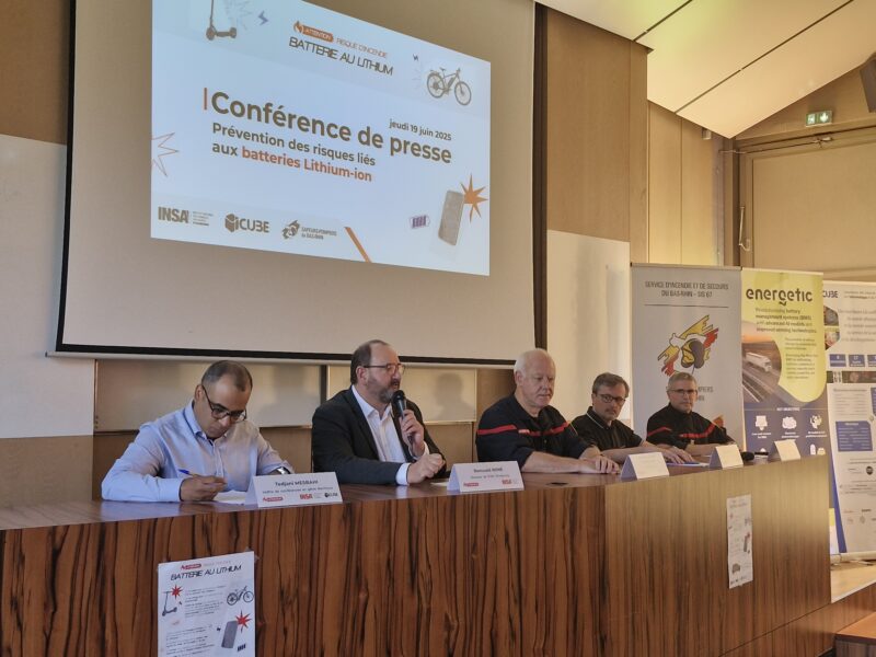 Jeudi 19 juin 2025, l’INSA Strasbourg, le laboratoire ICube et le service d’incendie et de secours du Bas-Rhin (SIS 67) se sont réunis, lors d’une conférence de presse organisée par le SIS67 autour de la thématique des risques d’incendie liés aux batteries lithium-ion.