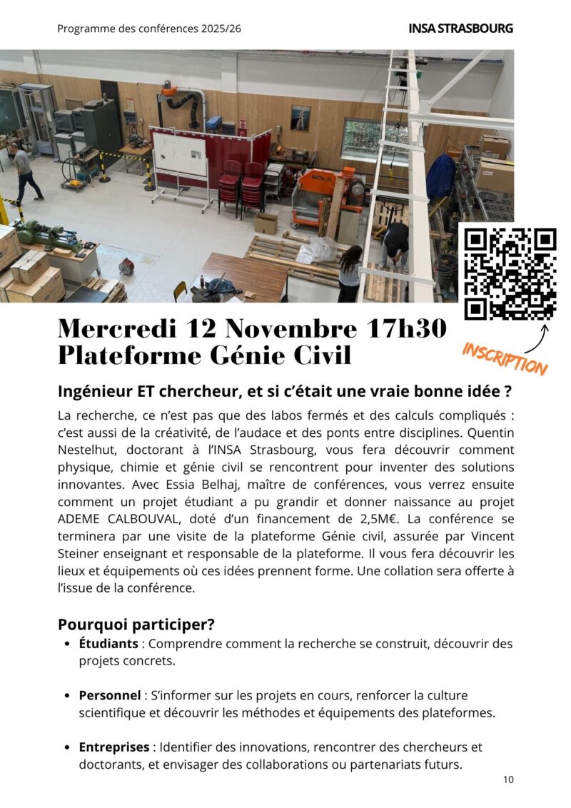 Mercredi 12 Novembre 2025 à 17h30 – Ingénieur ET chercheur, et si c’était une vraie bonne idée ? (plateforme génie civil – une collation sera offerte)