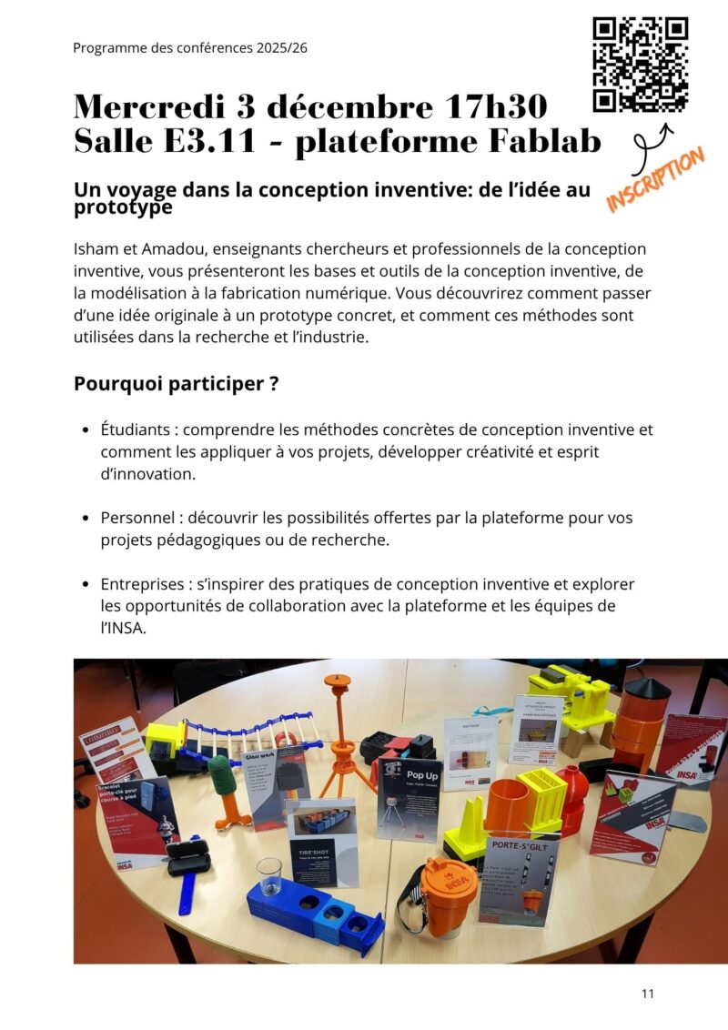 Mercredi 3 Décembre 2025 à 17h30 – Un voyage dans la conception inventive : de l’idée au prototype (Fab Lab – plateforme innovation et conception)
