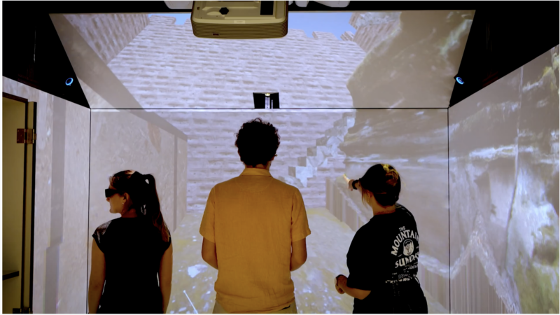Cette approche prend aujourd’hui une dimension encore plus immersive grâce à l’installation récente, à l’INSA Strasbourg, d’un cube de réalité virtuelle. Cet équipement pédagogique permet d’explorer les modèles 3D et 4D à l’échelle 1, en se déplaçant physiquement à l’intérieur des châteaux reconstitués. Plusieurs personnes peuvent ainsi partager une même immersion, observer les volumes, comparer différentes périodes historiques et mieux appréhender l’espace, comme si elles se trouvaient sur le site réel.