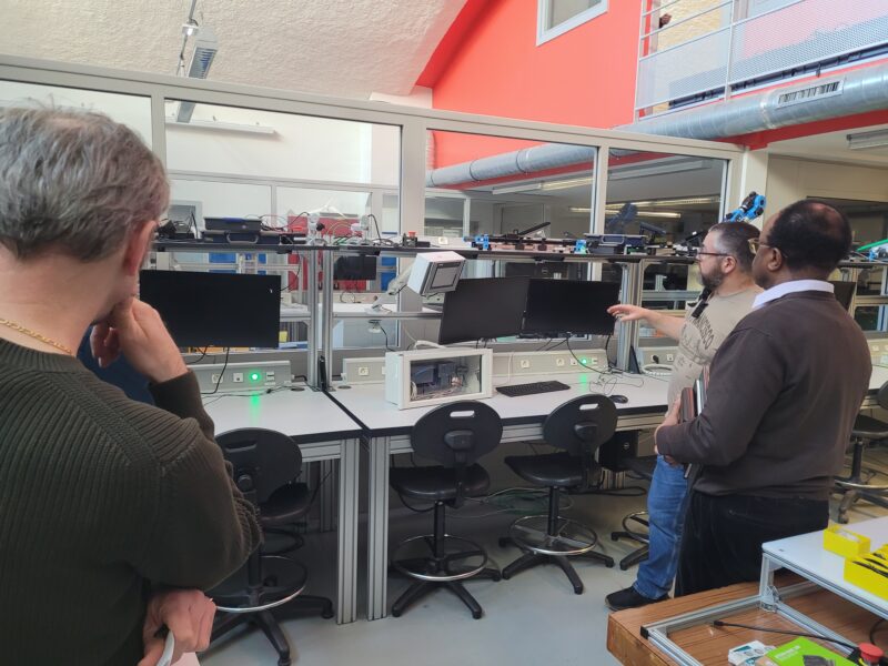La visite a mis en lumière comment les expertises se traduisent en projets concrets, notamment dans l’espace “Usine du futur”. L’un des axes majeurs est le développement de jumeaux numériques : des répliques virtuelles de systèmes réels. Ces modèles permettent de simuler le comportement d’une installation avant même sa mise en service.